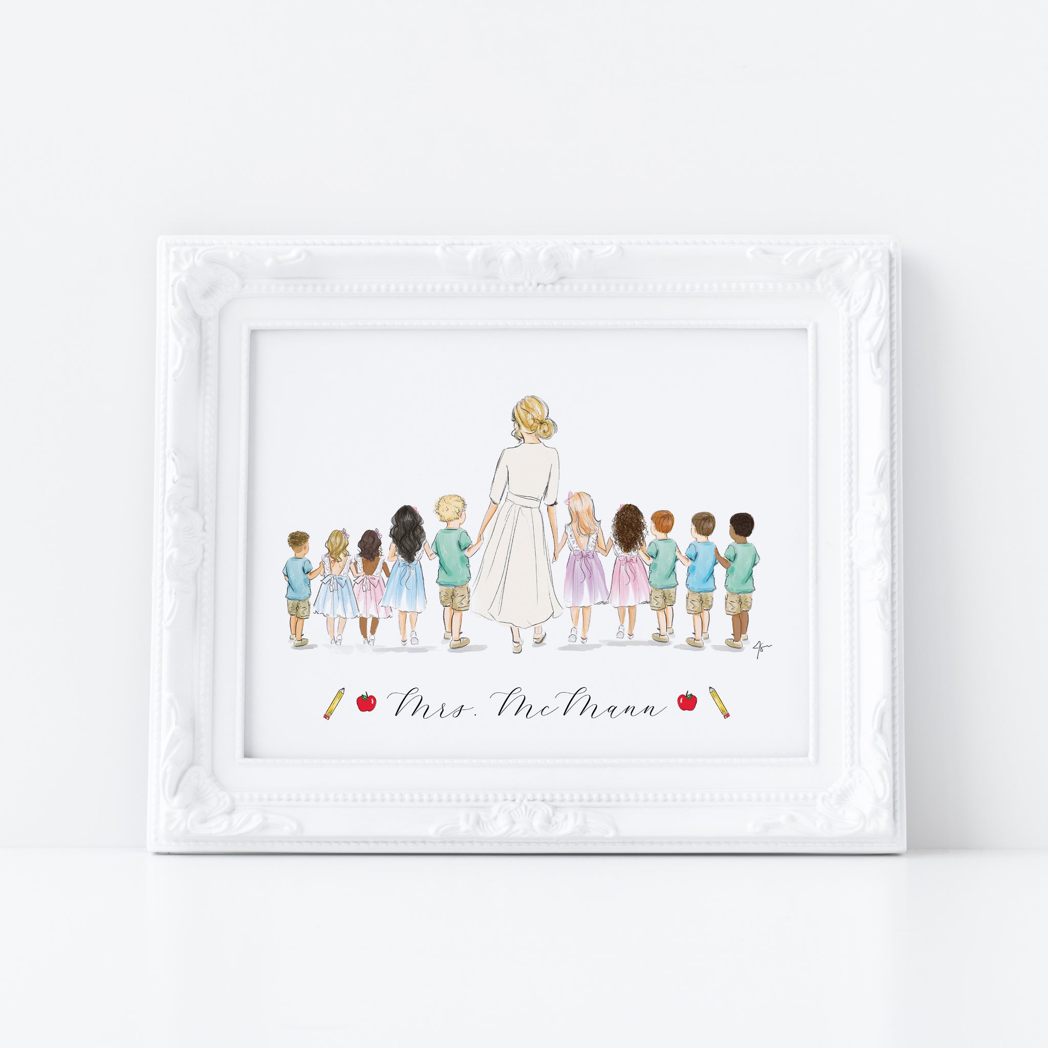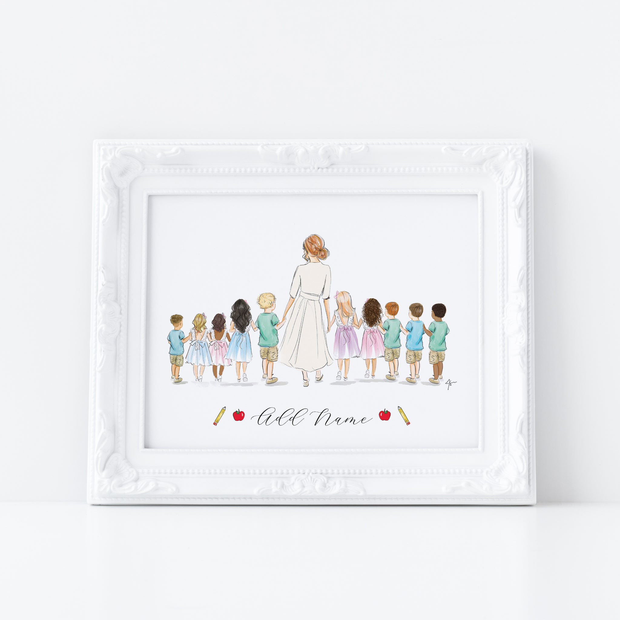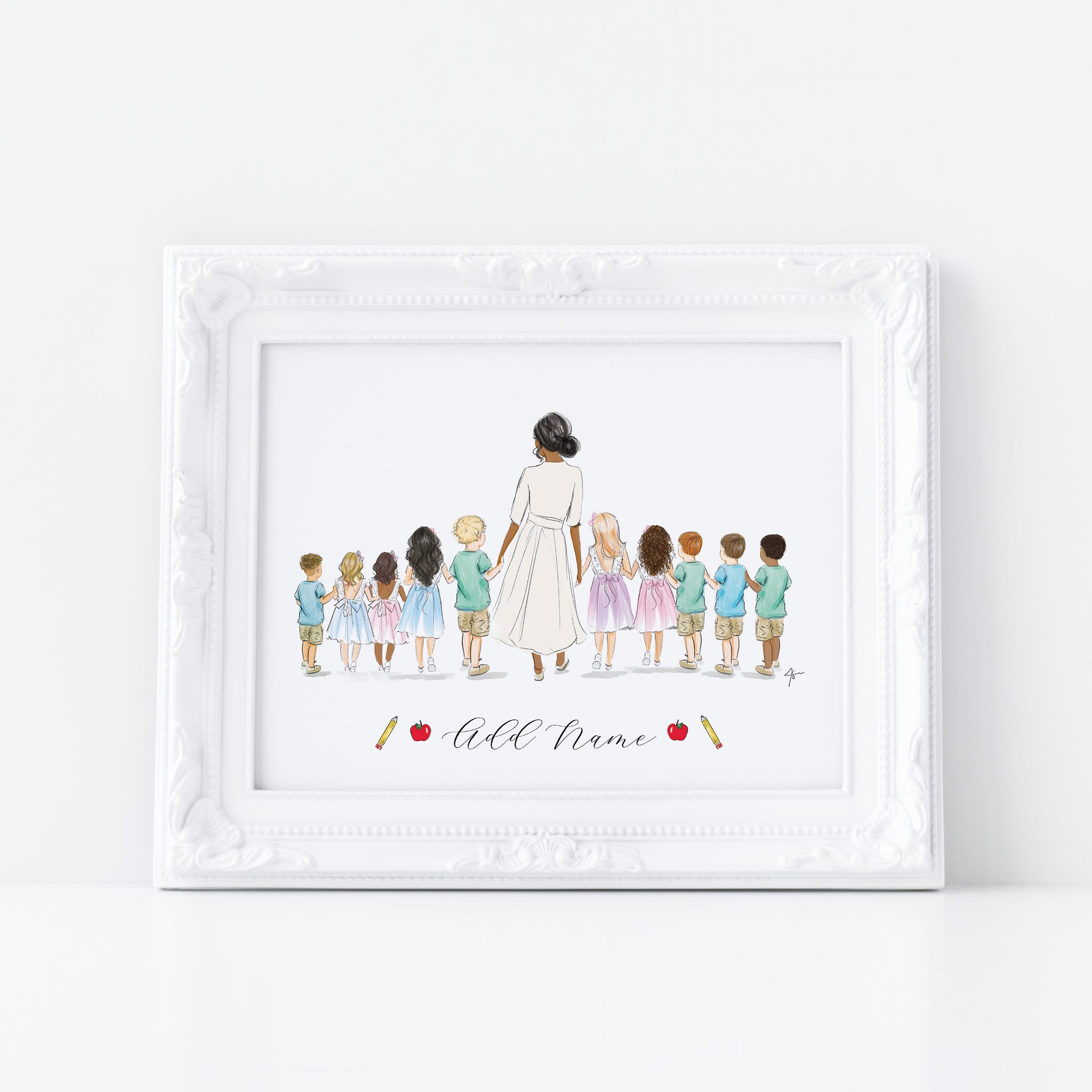 A heartfelt tribute to the dedication, patience and compassion behind a career in education. This personalized portrait is thoughtfully illustrated and customized with name, creating a meaningful keepsake for new and experienced teachers alike.